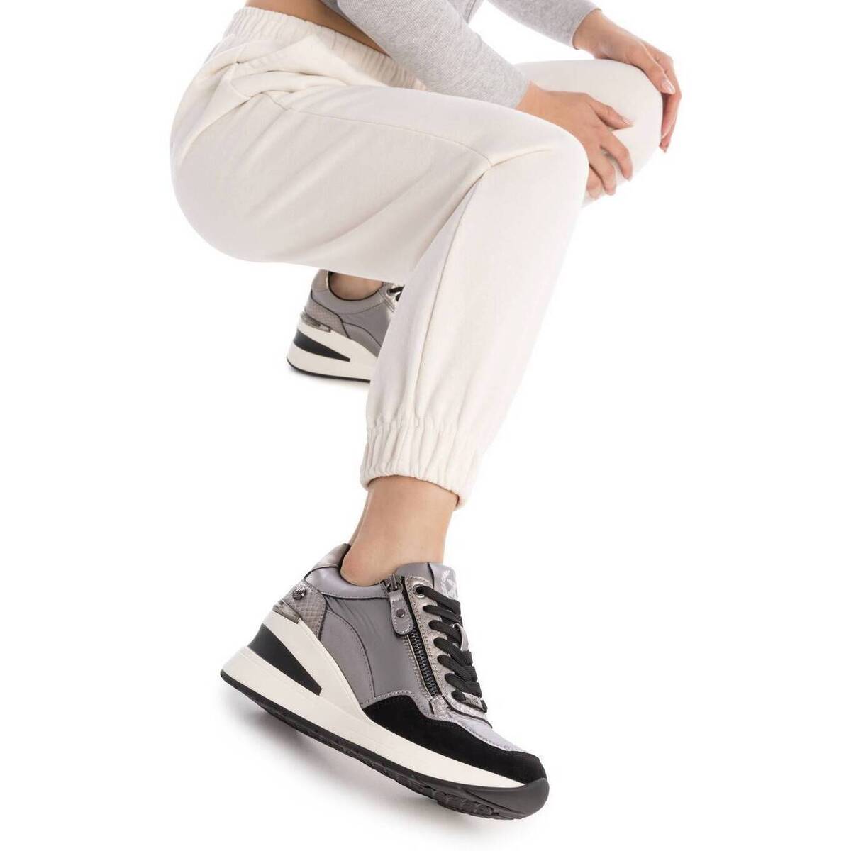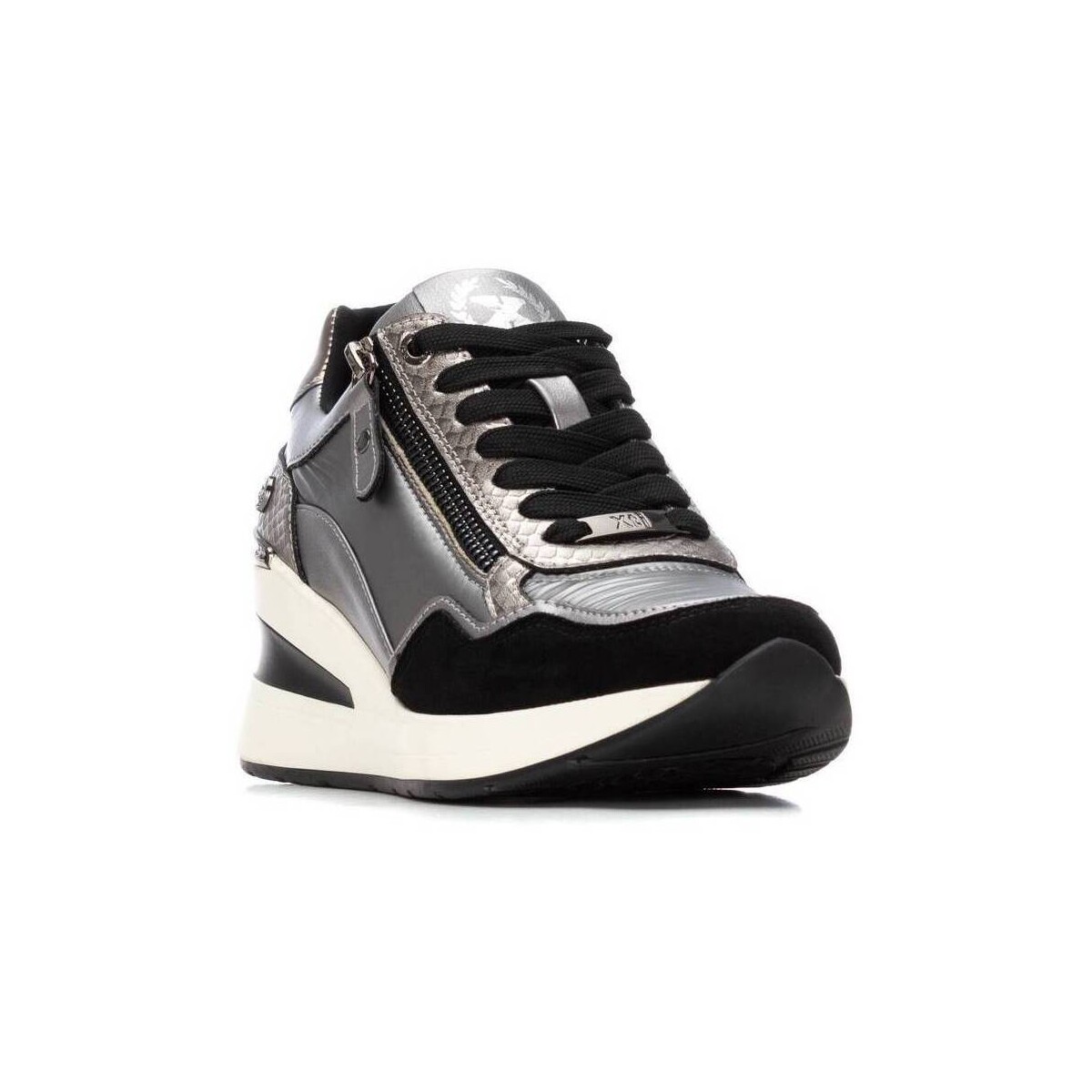 Baskets pour femme de la marque Xti. En similicuir. Fermeture zippée pour un chaussant facile et confortable. Semelle compensée en caoutchouc antidérapante. Un basique indispensable à votre garde-robe. Ce modèle est certifié vegan par l’organisation internationale PETA (Animal Rights Organization).