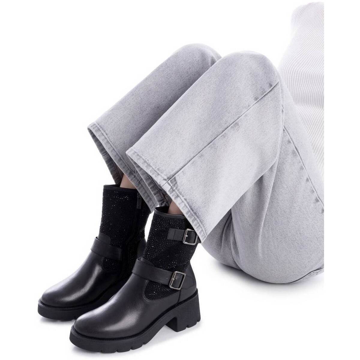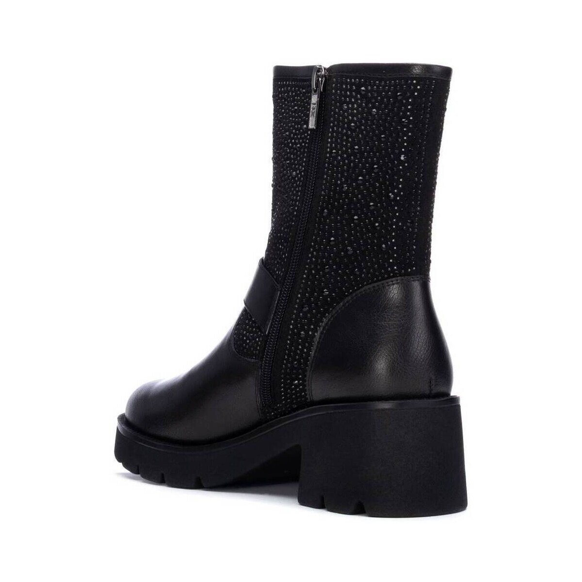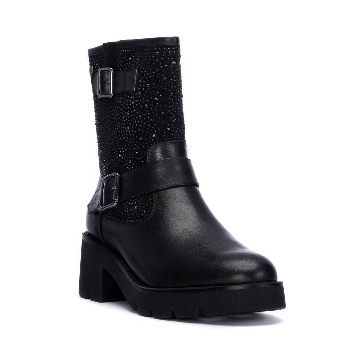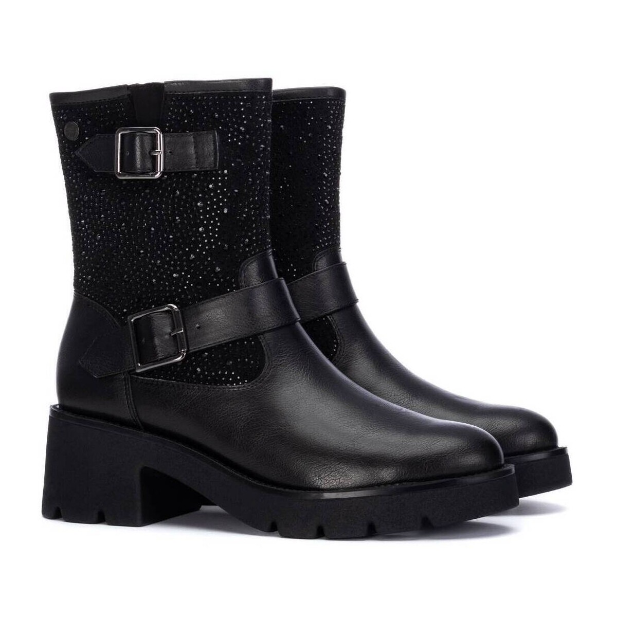 Bottines pour femme de la marque Xti. Fabriquées en similicuir, elles sont associées à du daim de haute qualité et à des détails en strass pour une touche sophistiquée et moderne. Deux boucles décoratives sur le côté apportent une touche de style et d’élégance. Dotées d’une semelle en caoutchouc antidérapante et d’un large talon de 5 cm, ces bottines offrent un confort et une stabilité exceptionnels lors de la marche. De plus, les strass sur la semelle lui confèrent une touche unique et accrocheuse. Idéales pour celles qui recherchent des bottines polyvalentes alliant glamour et confort en toute occasion. Ce modèle a obtenu la certification végane de l’organisation mondiale PETA (Animal Rights Organization).